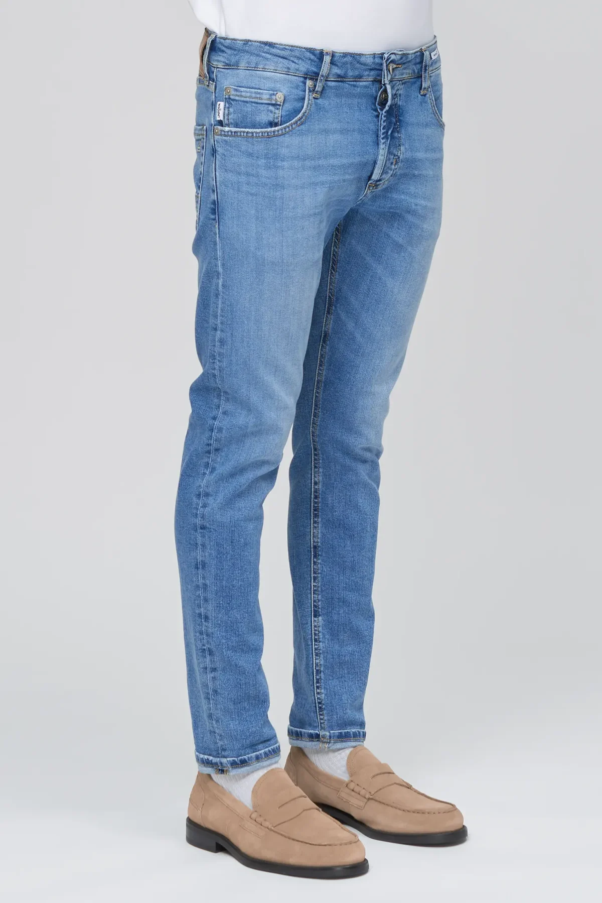 Five-pocket jeans in Mid Blue Denim with a regular fit cut, designed to offer the perfect balance of comfort, durability, and timeless style. The Barney Regular is a contemporary reinterpretation of classic denim, ideal for those who want a well-proportioned, easy-to-wear silhouette suitable for everyday use.
