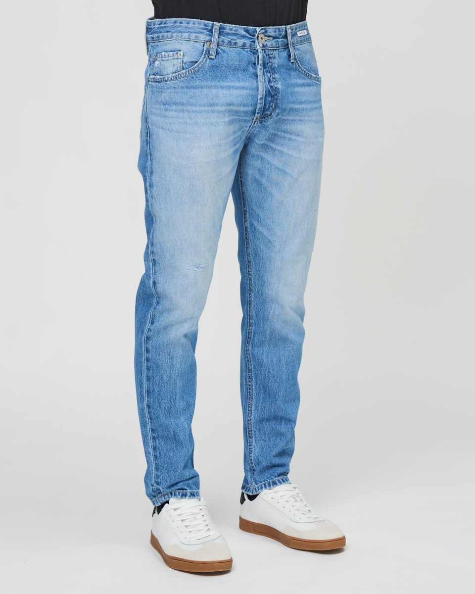 Regular five-pocket jeans in Light Blue Denim with a cropped length, designed for a contemporary, casual look. The Danny Regular Cropped Fit combines the comfort of a straight fit with a short fit at the ankle, perfect for outfits with an urban, modern feel.