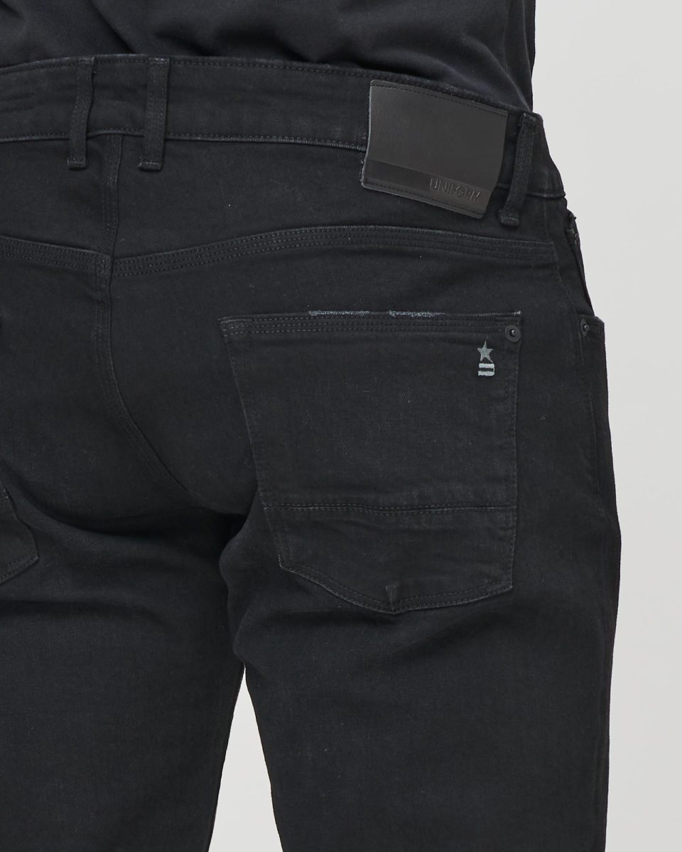 Five-pocket jeans with a slim fit and normal crotch in Black Denim, designed for those seeking a slim yet comfortable fit. The Dean Slim Fit Normal Crotch features a balance of contemporary looks and everyday practicality, with an ergonomic fit that enhances the silhouette without being constricting.