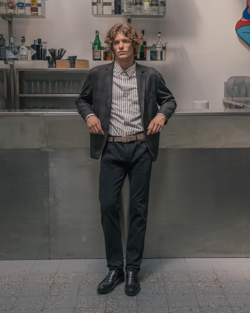 The model is 186cm tall and wears a size 35